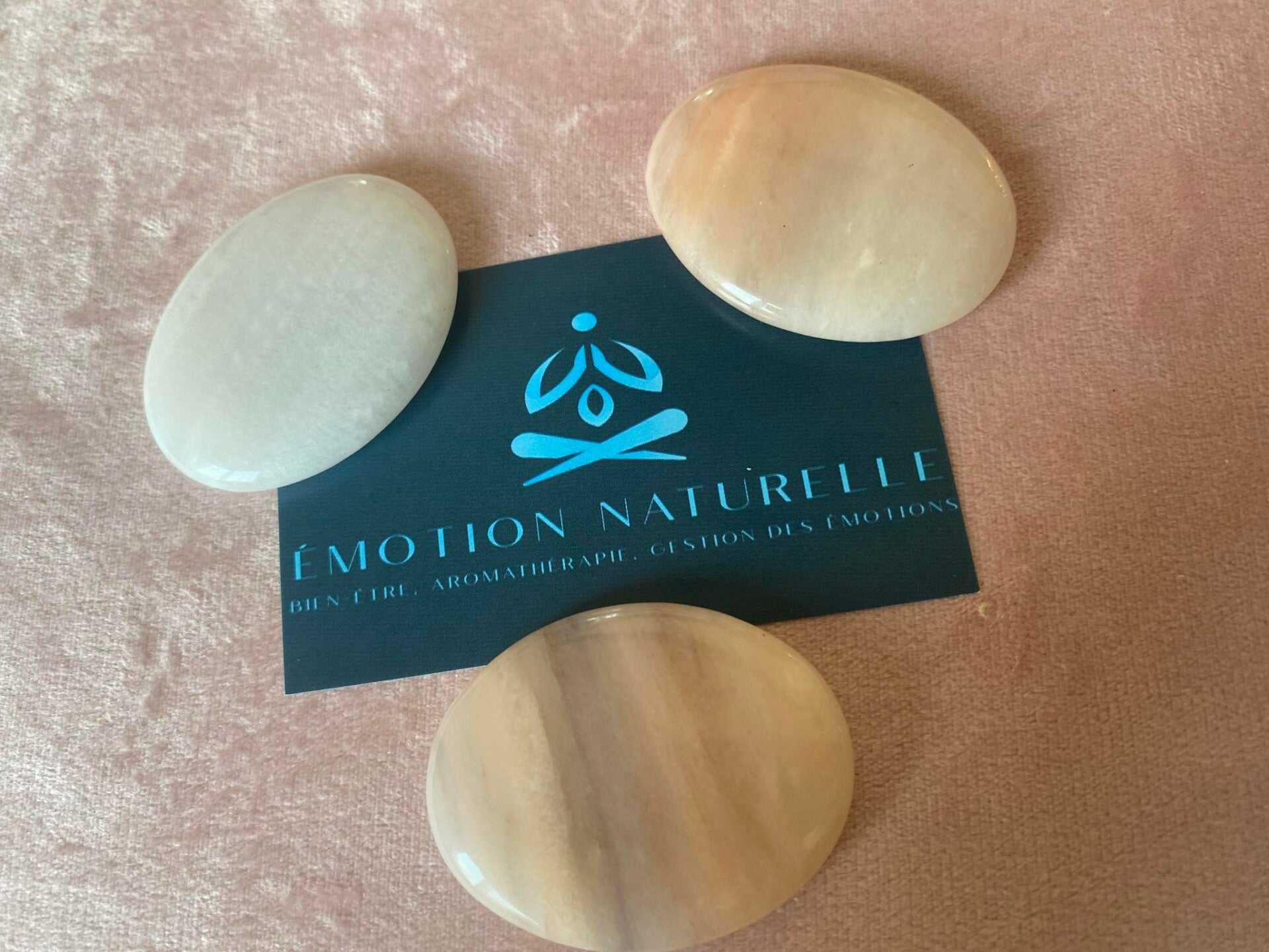 La pierre est légèrement creusée afin d'effectuer un mouvement de frottement avec le pouce qui permet de diminuer le stress.